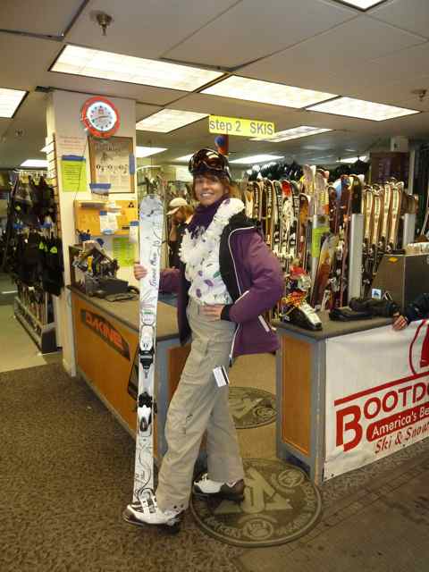 I found my bliss in Volkl’s Kenja, a highly versatile ski that won me over by its feel and look. Not surprisingly, my boyfriend—an awesome skier—was already smitten by the Volkl Kendo, the male version, which he had been touting throughout the season. Sadly this much-in-demand ski was not available at bargain prices a month ago, so I decided to opt for Bootdoctors’ demo pair without even blinking an eye. Riding the chairlift a couple of weeks later, a fellow instructor informed me that my fair ladies had received number #1 ranking from SKI MAGAZINE this year for gold medal gear in mixed snow. No wonder I fell in love with them.