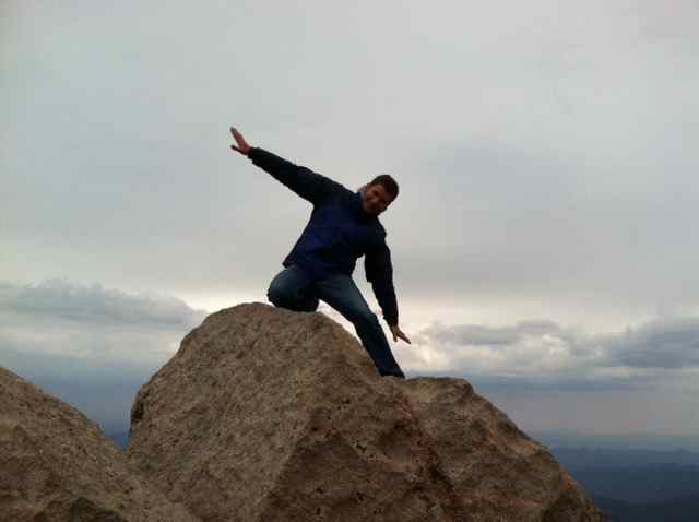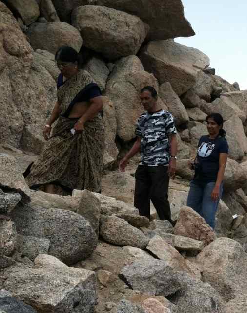 We greeted fellow travelers at the summit. Folks from all corners of the earth—in saris, turbans and tank tops—much like the field of foreigners I’ve encountered at other outstanding sites such as the Grand Canyon and the Great Wall of China. Steve, my hunny, crawled to the highest peak for the perfect photo op. I had the nerve to ask him to stretch out his arms in triumph. (I missed the tippy-top by about ten feet.)