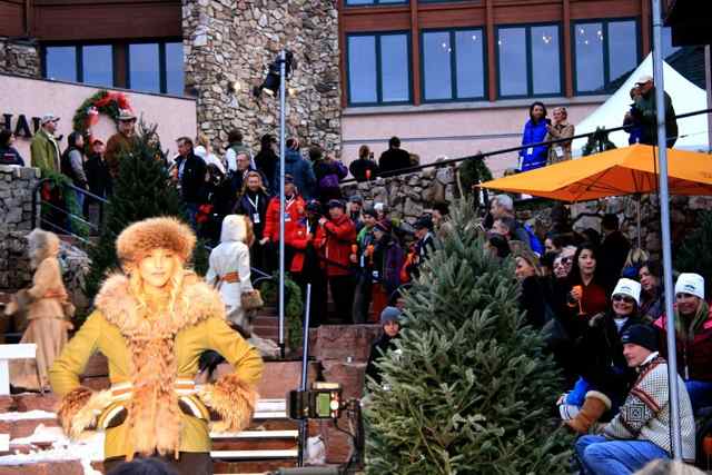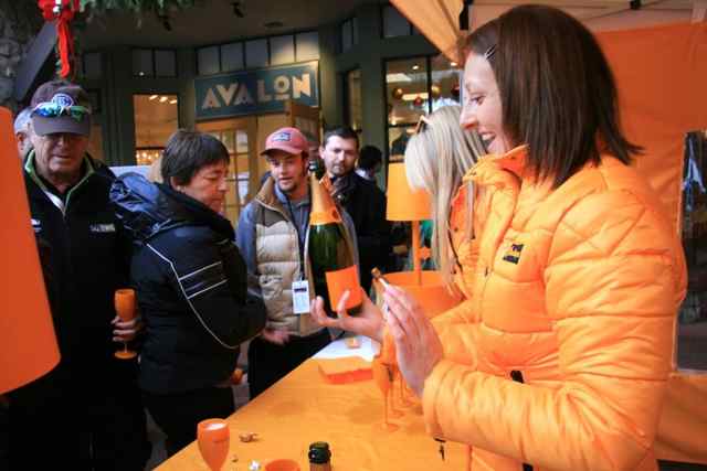 By 4 p.m. we were hobnobbing with the best of them at a Veuve Clicquot-sponsored tasting and fashion show in the heart of Beaver Creek village. (We enjoyed V.I.P. passes, however, the event was open to all.) Leave it to Beaver Creek—a ski resort typified by heated walkways, exclusive boutiques, people dressed as chefs dispensing freshly-baked cookies after skiing and the slogan “not exactly roughing it”—to put on such a glorious show. The whole day was free (except for some of the refreshments) and then a sexy showing of ski, snowboard and après-ski wear for men, women and children to boot! (If you want to take cues from this fashion show, the look on the slopes this year is to go topless—or to sport just a bikini top—beneath your parka. Wink. Wink. I dare you.)