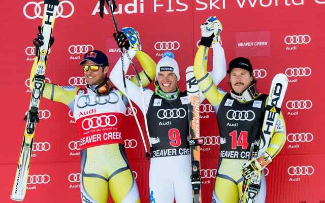 Podium Time for Christof Innerhofer of Italy, Flanked by Kjetil Jansrud and Aksel Lund Svindal, both from Norway