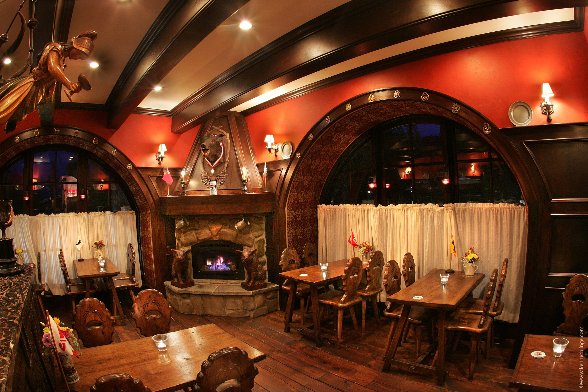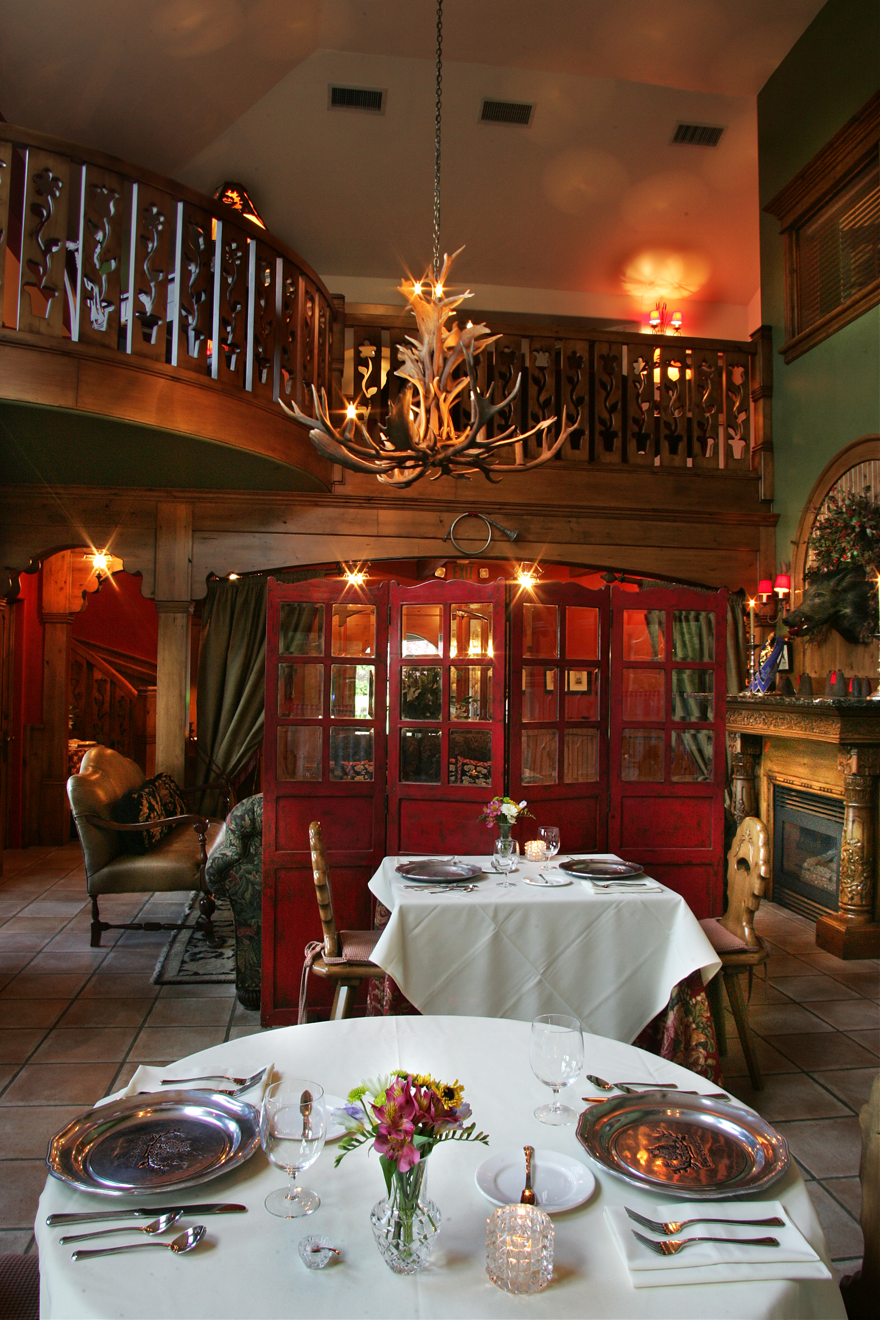 Just like in the best restaurants in Europe, here tables, dressed in white linens draped over rich, floral table skirts, are set with an array of finery including pewter chargers and crystal glasses. (Although only one wine glass may be on the table at a time—that’s Mormon law.) Blue Boar’s seasonally-oriented menus achieve a fine balance between traditional European specialities including schnitzel and fondue along with regional offerings such as Rocky Mountain trout (from a nearby blue-ribbon trout stream, but of course). As is the tradition in a fine European inn, breakfast, lunch and dinner are served here daily along with an award-winning brunch on Sundays. Chef Eric May also presents a special Tasting Menu every Wednesday night that changes weekly.
