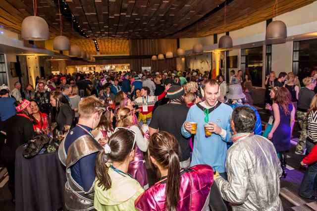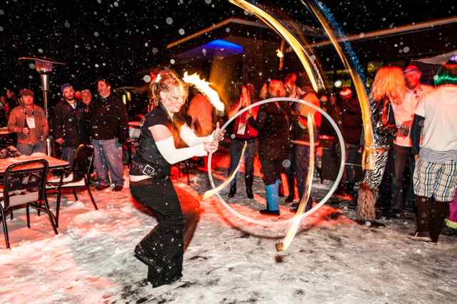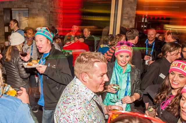 They’re a fun crowd, all those MTS folk, as you can see from the images in this post. Most are snowsports enthusiasts, people that love to have a good time on and off the slopes. The MTS welcome reception at Elk Camp in Snowmass, sponsored by Snowmass Tourism and Aspen Skiing Company, elevated spirits higher than some of the nearby towering peaks. Just before loading the gondola with my boyfriend, Steve Togni, GM of Mountain Lodge Telluride and a guy that’s attended MTS for over a decade, we were served margaritas, concocted with habanero-infused tequila, delicious libations that made the ride to the mountaintop all the more merry. Once there, we mingled with ski industry aficionados, many of whom came dressed in retro ski attire. We bopped around sampling all kinds of tasty treats from the food and wine stations set up within this large on-mountain restaurant. We marveled at some of the spectacular fire and ice entertainment provided before heading back down the mountain.